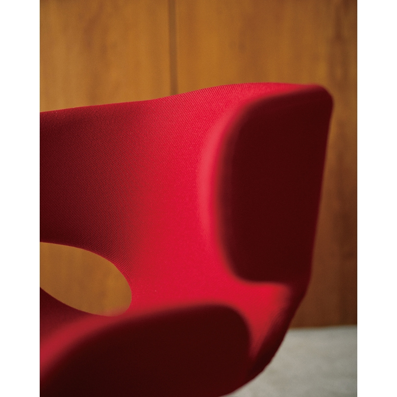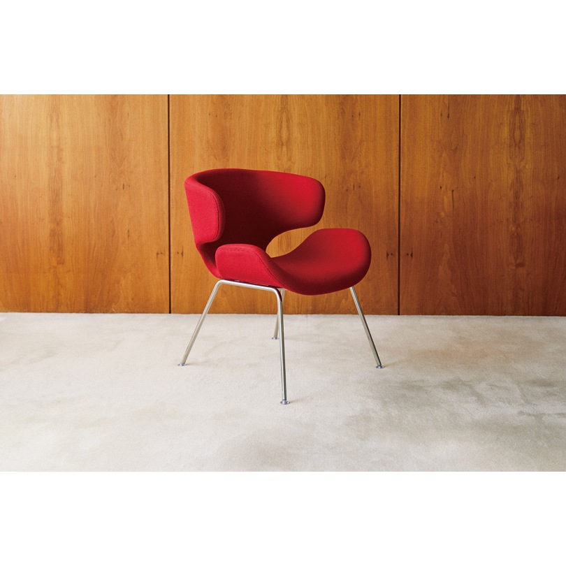 ジャパニーズデザインの黎明期を支えたデザイナー・剣持勇と、3次元カーブの成形合板の実現に果敢にチャレンジしていた天童木工が共に作り上げたチェア。 S-5009AA-AAが原型で、こちらは大型タイプとして作られました。 背もたれは、座った人の身体を廻り込むように大きくカーブしており、肘掛けとして体重を預けることもできます。 また、ほど良いしなりがあり、しっかりと腰回りをサポートして身体を支えてくれます。安楽イスのような、ゆったりとした座り心地をご体感いただけます。